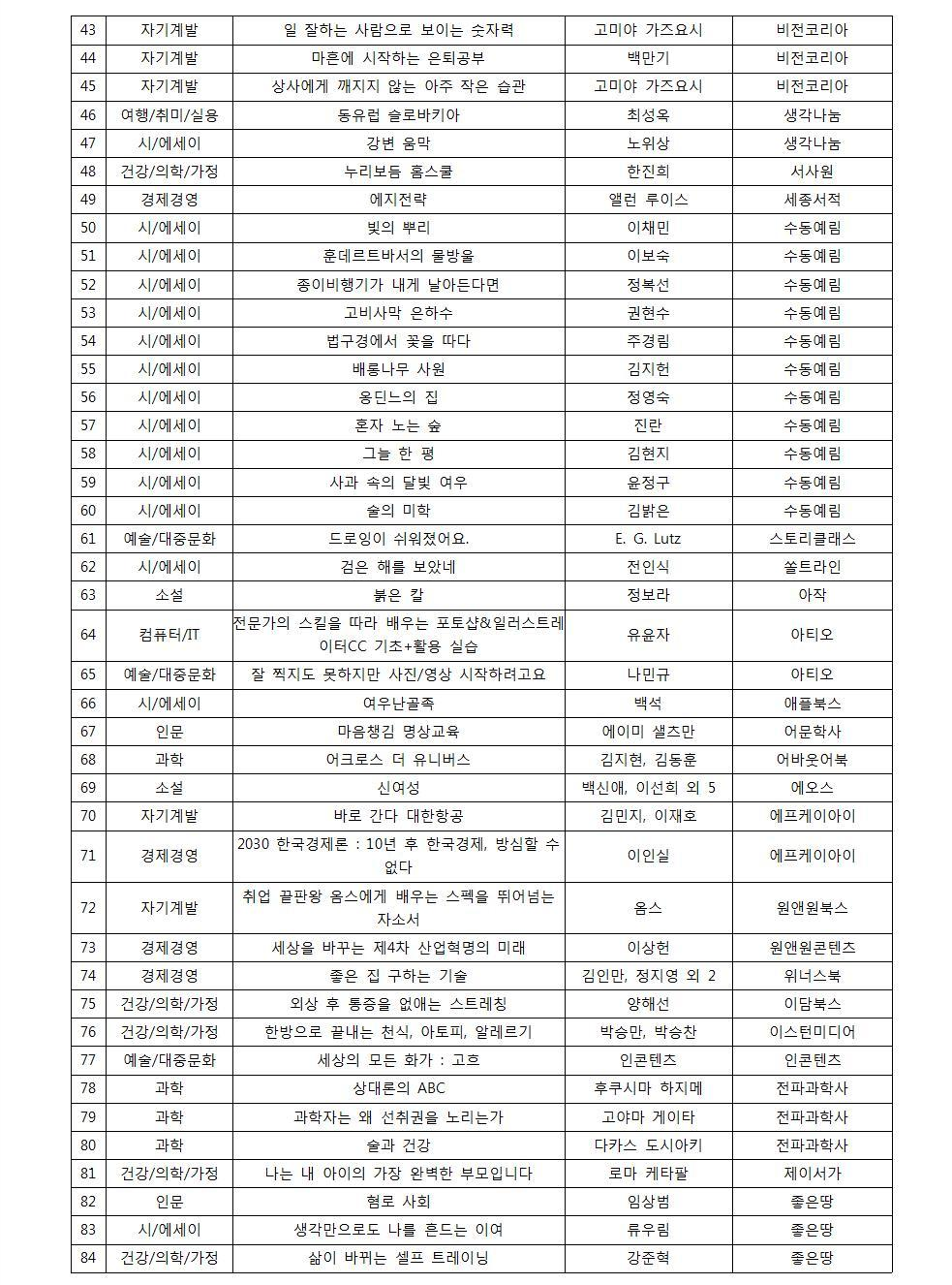 | 81 | OKR -전설적인 벤처투자자가 구글에 전해준 성공 방식 | 존 도어 외 1명 | 세종서적 |