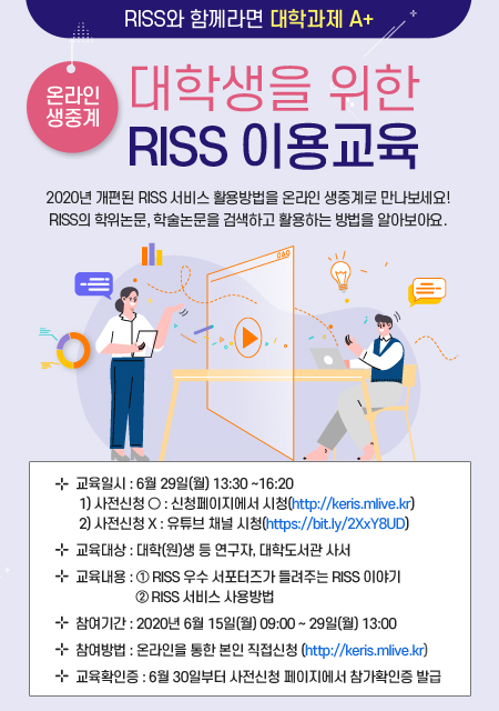 [2020년 RISS 온라인 이용교육] RISS와 함께라면 대학과제 A+ 도서관공지2020. 6. 17. 09:34